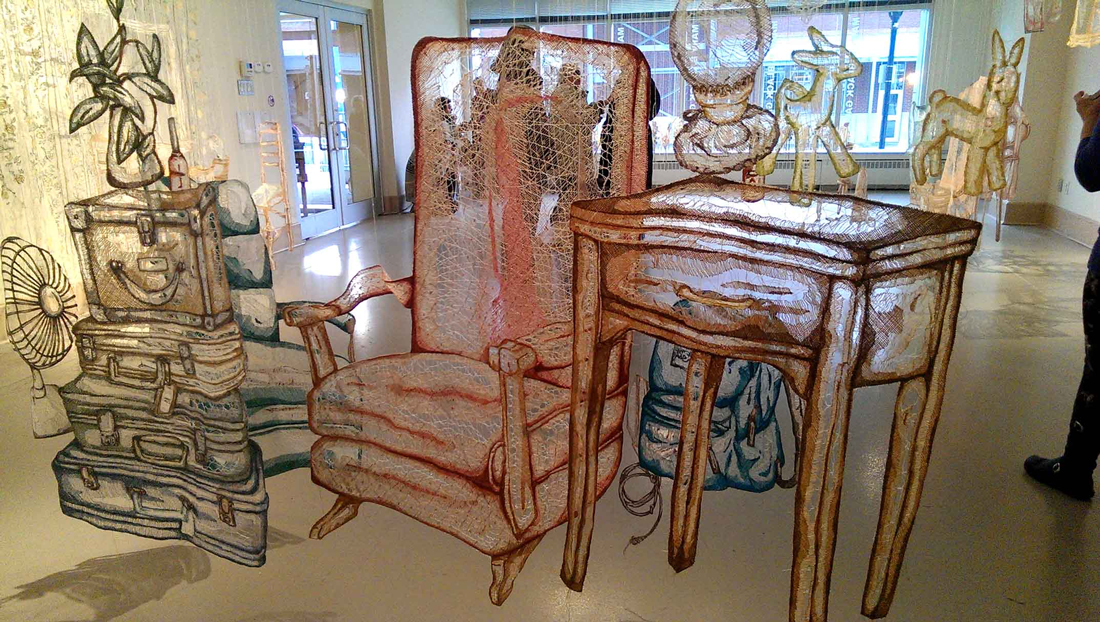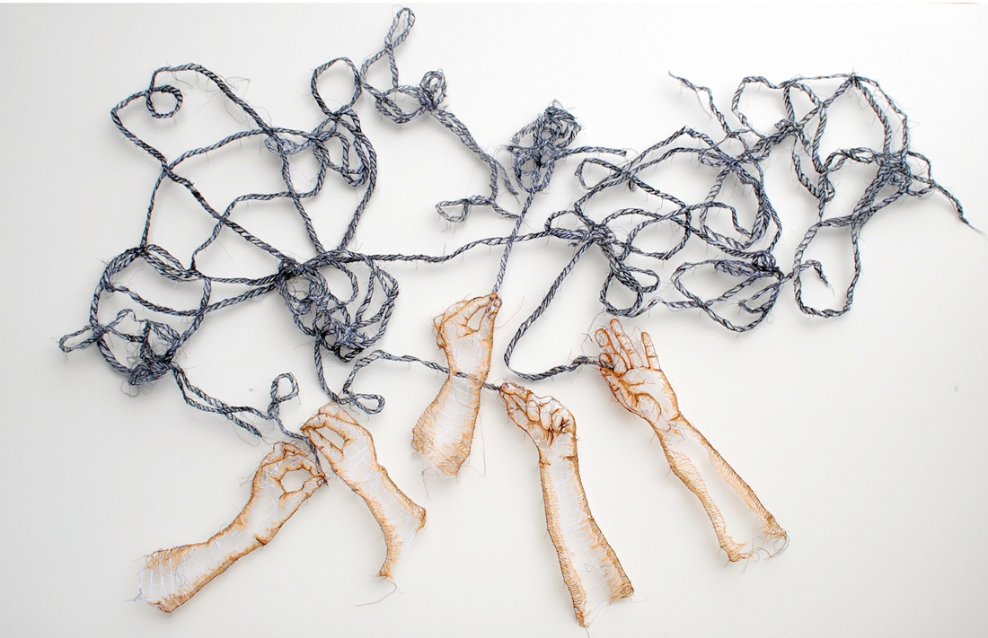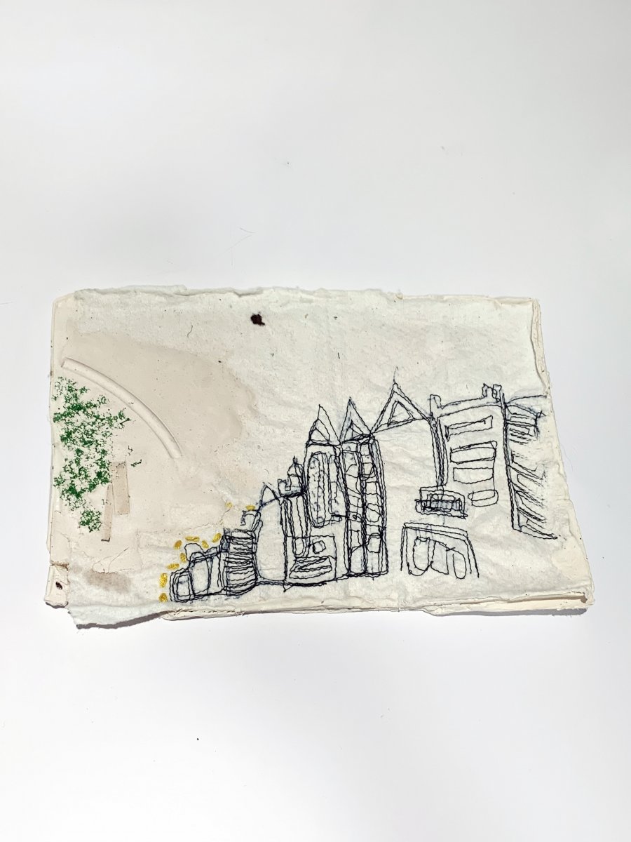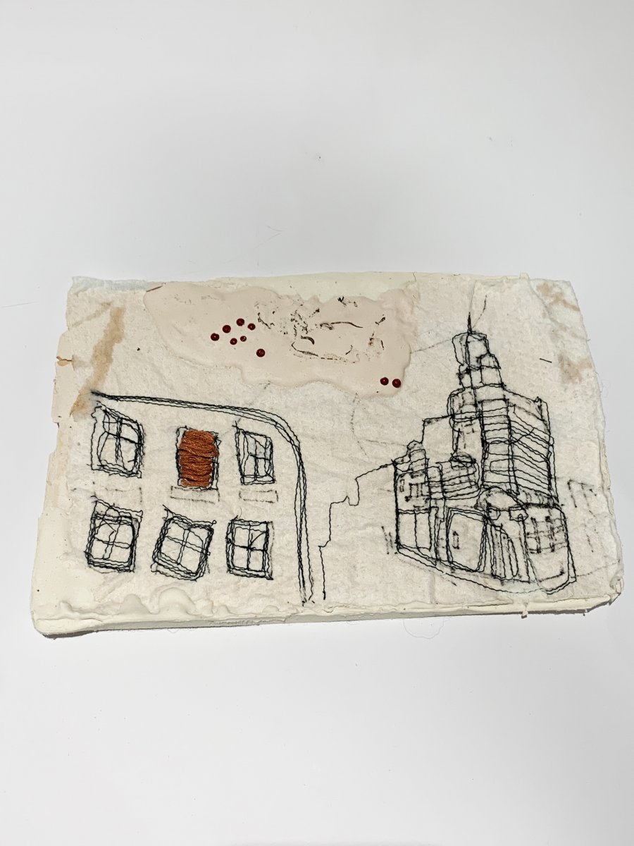 Amanda McCavour's work also inspired me a lot, I started to use the mess line to build a structure for the buildings in Camberwell. I used a sewing machine to do it all and I also collected all of my face warps in my daily life, these little pieces fabric became my best samples.
