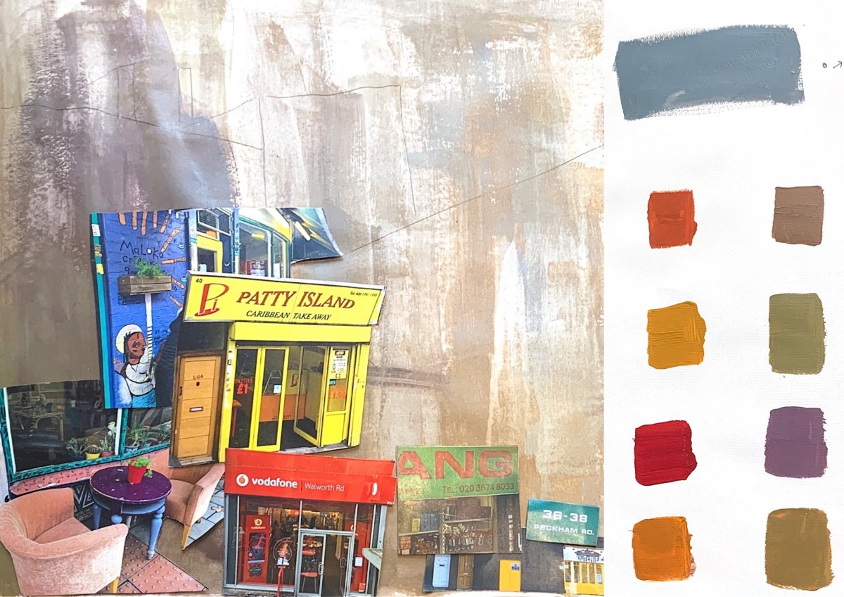 According to the grey tone colour of the buildings, I made a colour palette. Mixing with bright colour and grey, the grey tone colour shows the modern Camberwell worlds.