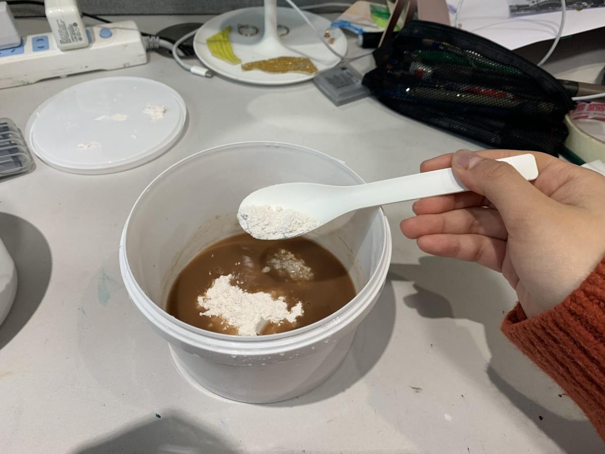 Then I started to think about what material can show the grey tone feeling. After I attended the experimental workshop exploring the plaster casting process, I found that plaster is the most suitable material. For one reason, plaster is the traditional material for building. And the second reason is when I mixed bright colour with plaster together, I can see that grey tone colour happened. This process is similar to the process I made my colour palette.