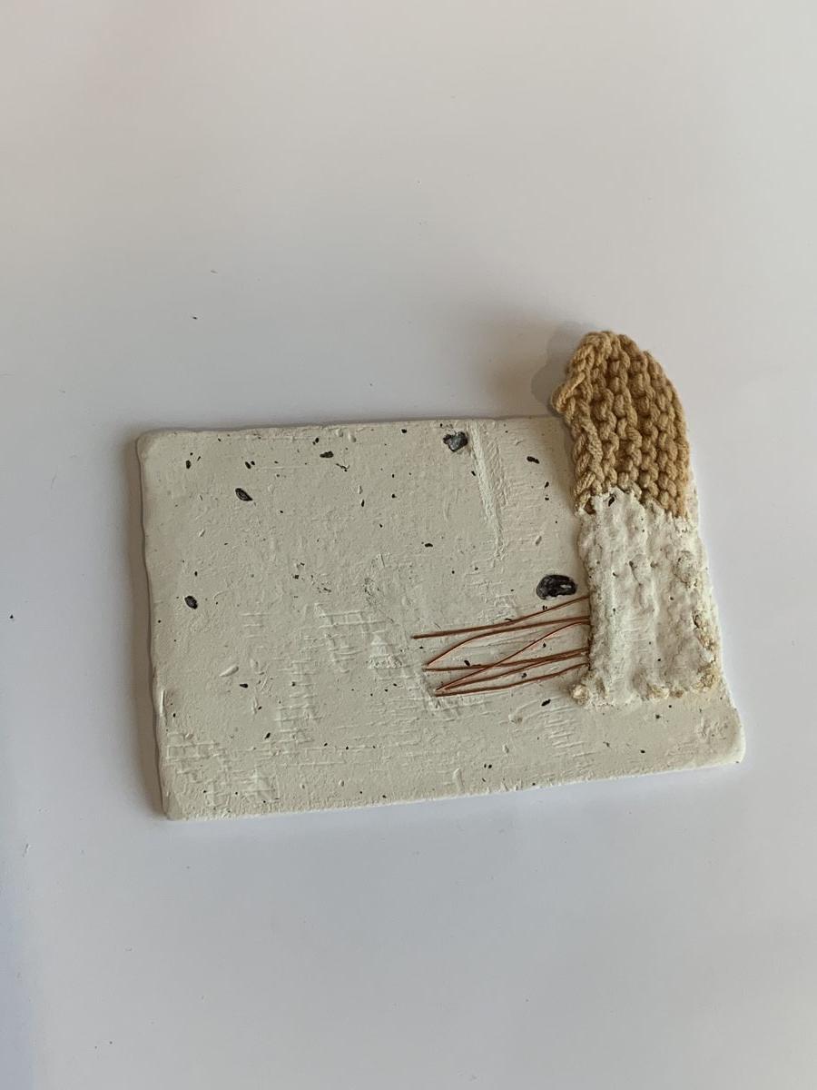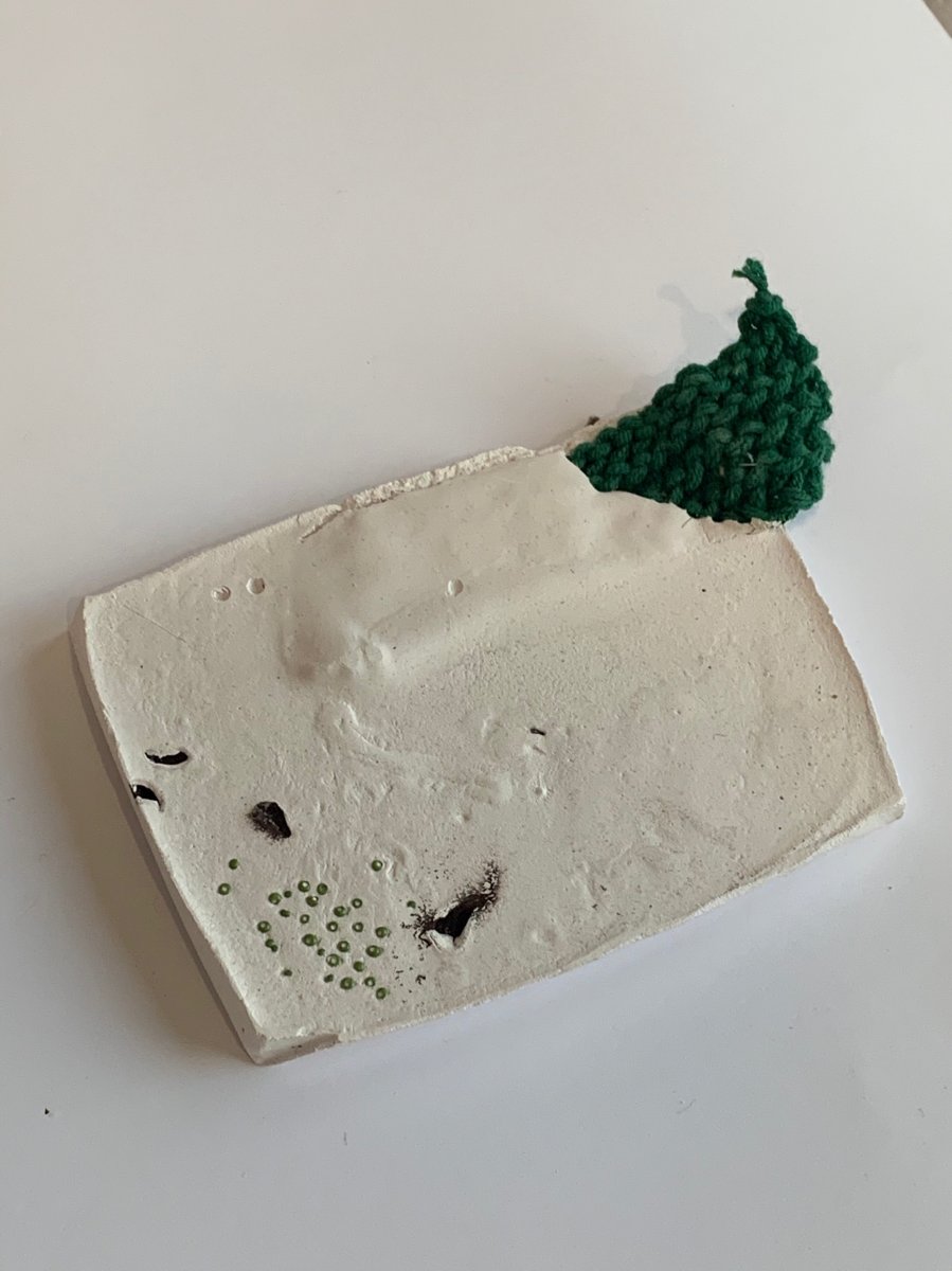 In order to show the large area of grey tone in Camberwell, with a small number of colourful shops, I used a large area of plaster as a base and decorated it with a small amount of colourful knitting and materials.